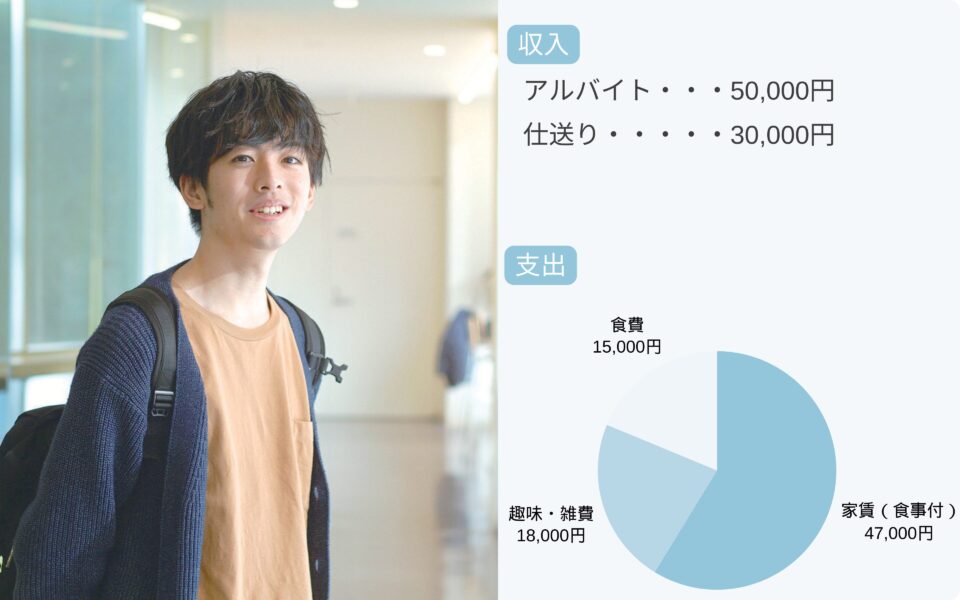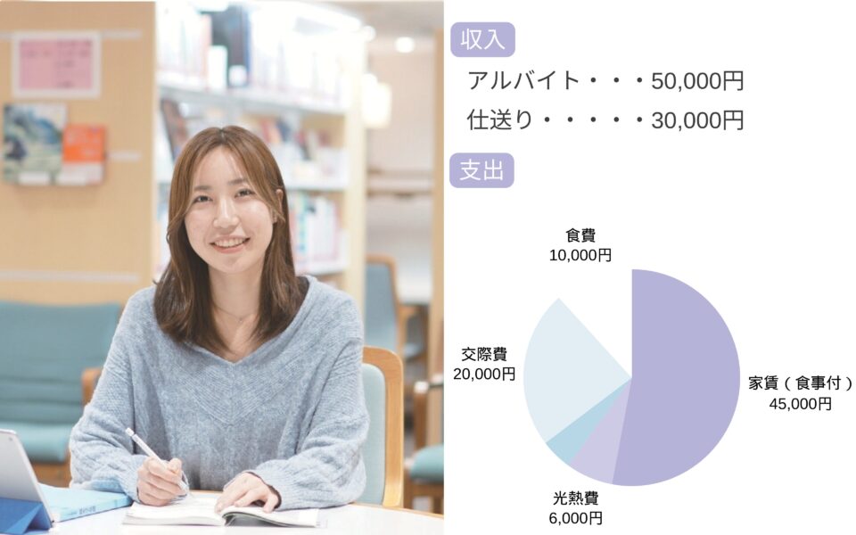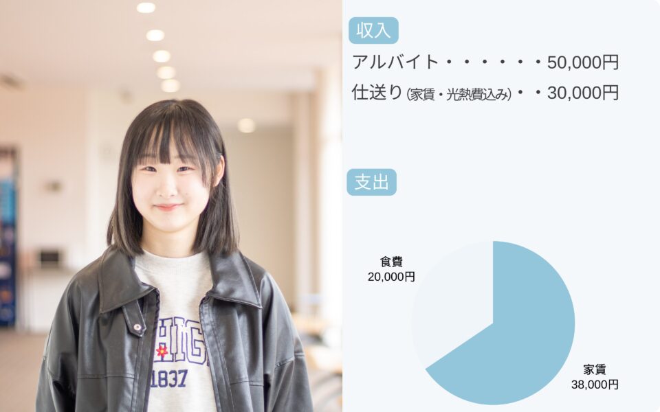朝食と夕食が出るなど家事の負担が少なく、家具もそろっているので準備する必要がありません。入寮後の寮内のイベントで、他大学の友達もできました。
