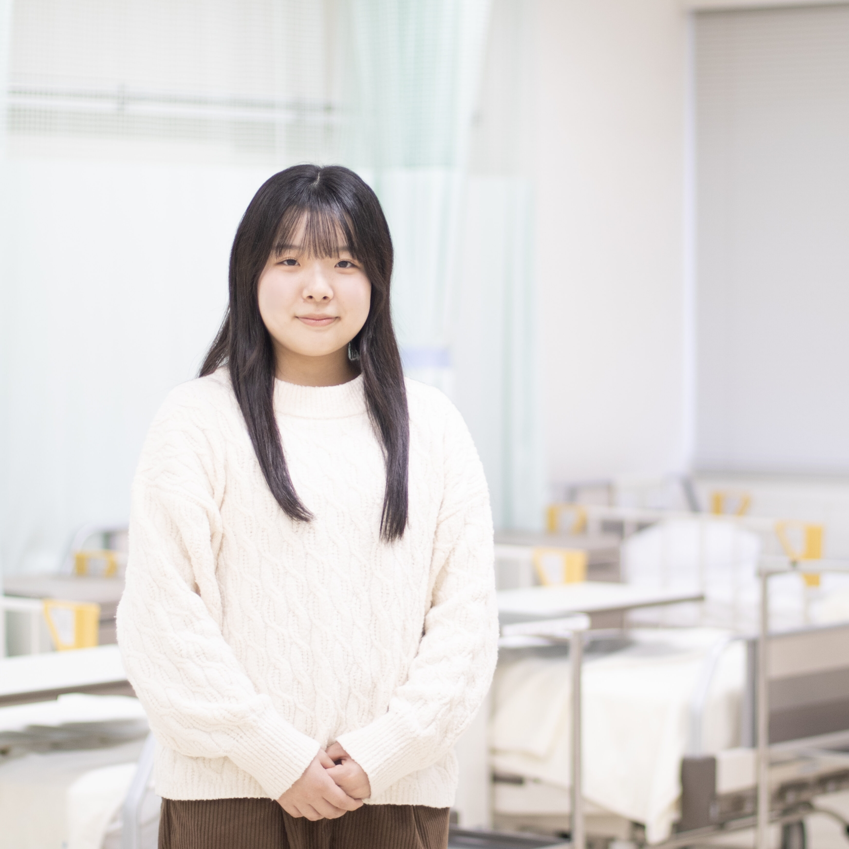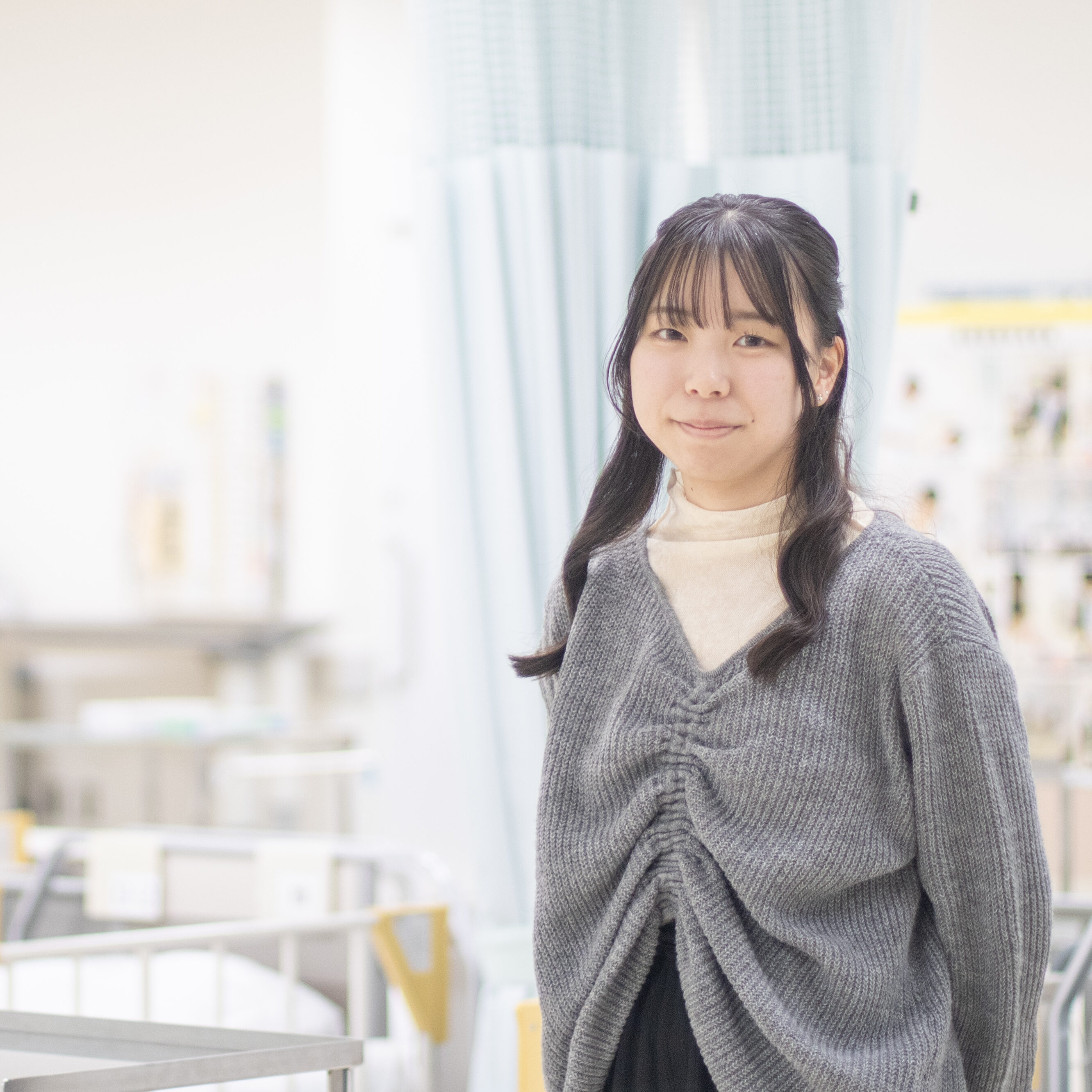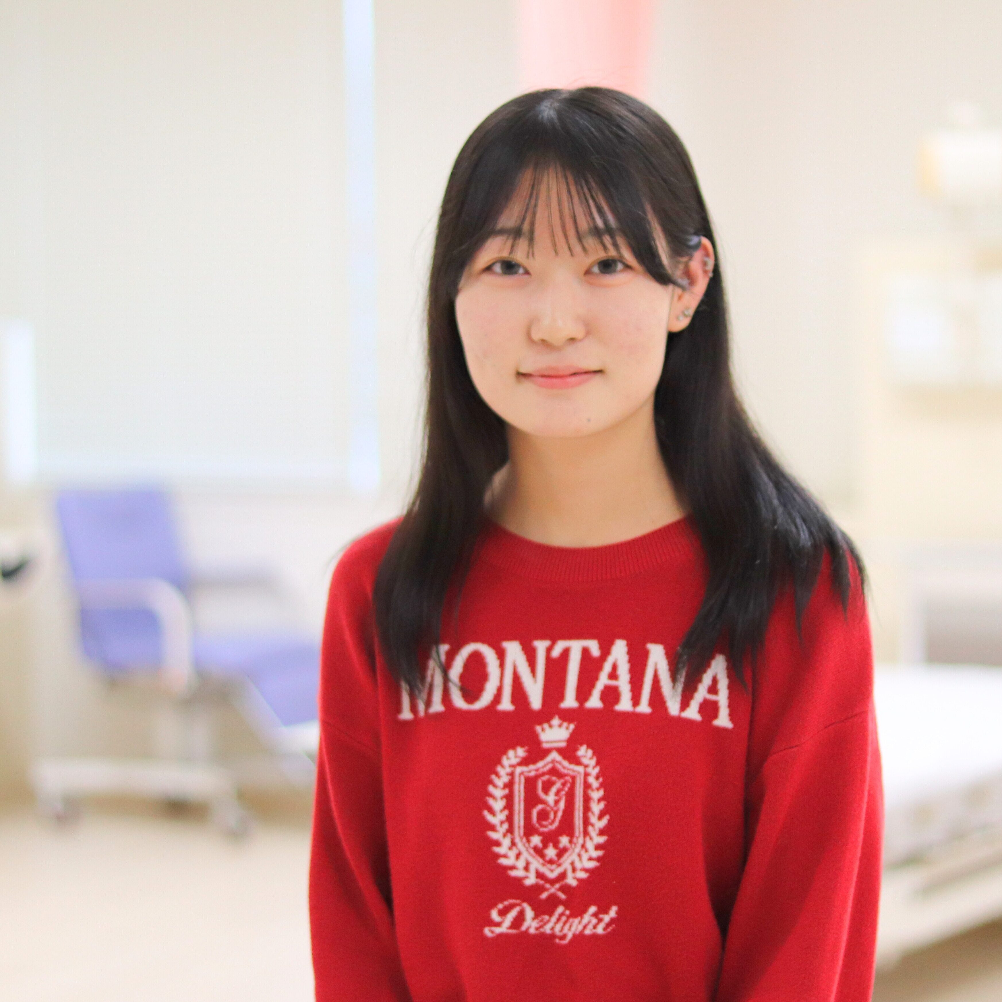 - 私はずっと人体に興味があり、さらに看護職にも強く関心を持っていたため、大学では人体の知識や看護職として必要な知識・技術など、まさに自分の興味のある分野を学ぶことができて楽しいです。大学では、これまでに比べて課題に追われることが多いとすでに感じていますが、受験時代に毎日継続して勉強していたおかげで、今でも無理なく過ごせていると実感しています。受験期は勉強に疲れることもあると思いますが、その努力は必ず役に立ちます。諦めずに頑張ってください。応援しています。