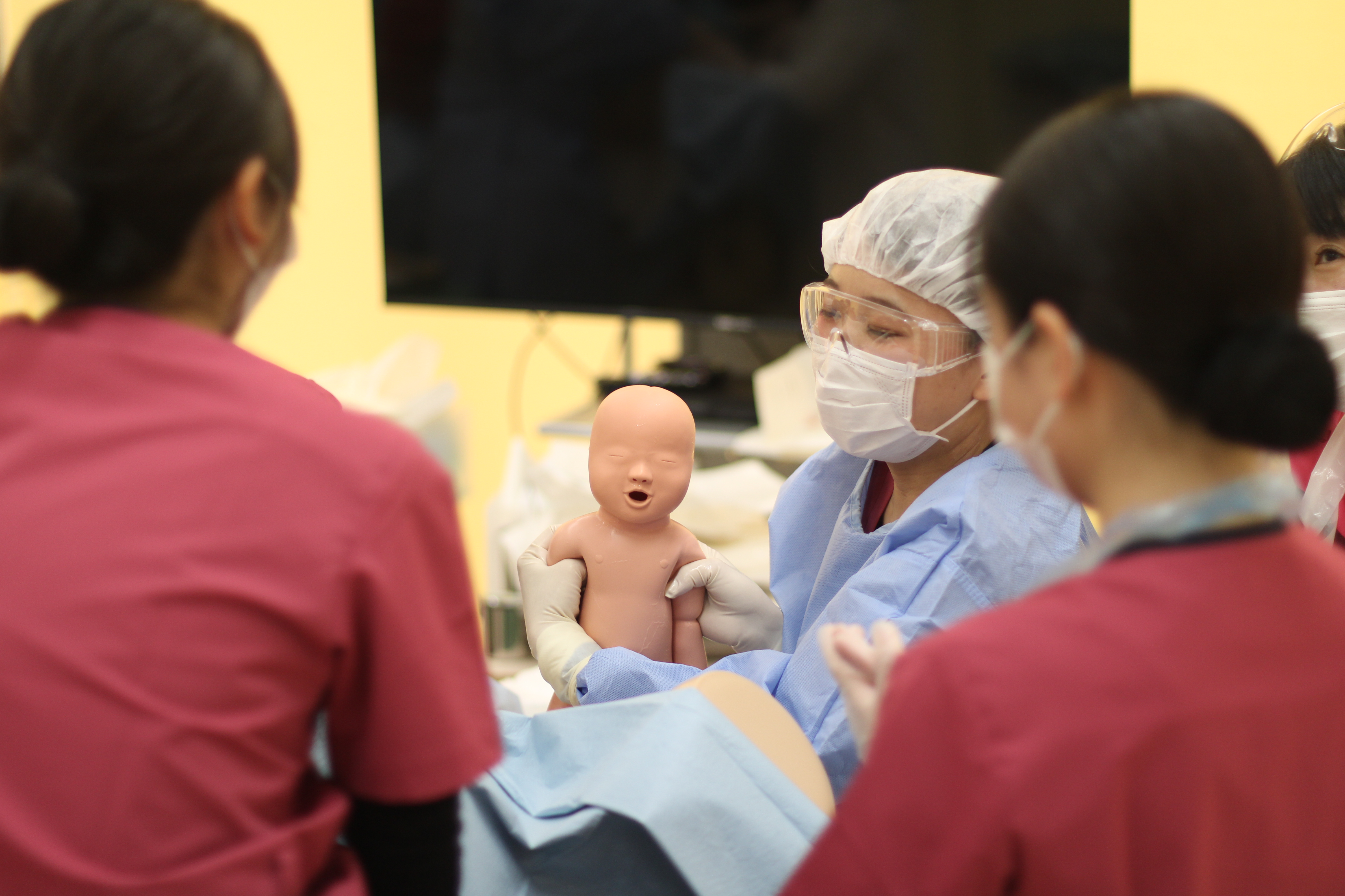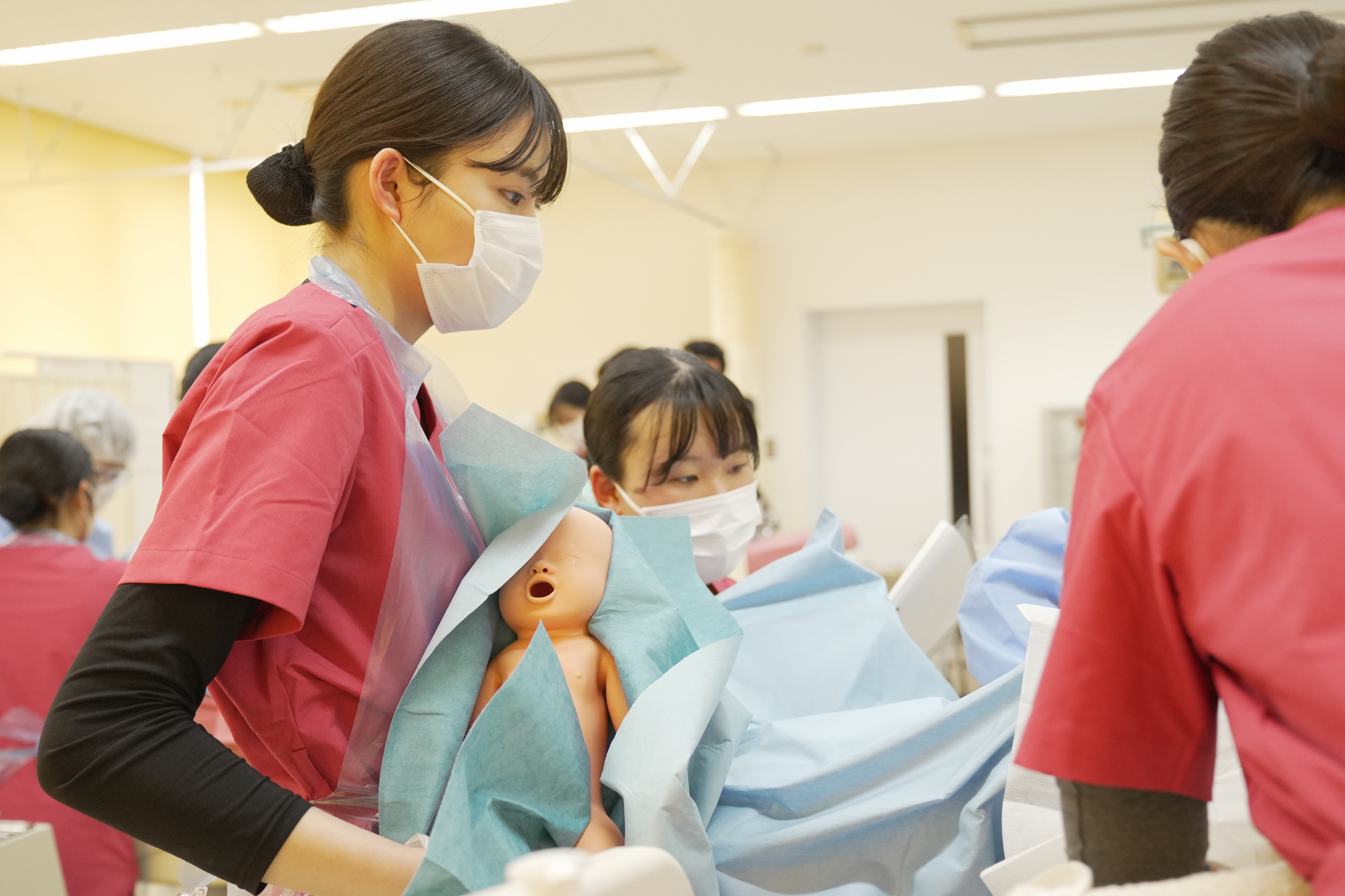 実習内容は、分娩介助にとどまらず、産後のお母さんと新生児のケア、授乳・育児支援、帝王切開の見学、NICU実習など、助産師として求められる幅広い知識と技術を学びます。また、妊娠期から産後まで一人の妊婦さんを継続して受け持つ実習を通して、切れ目のない母子支援の重要性を理解します。