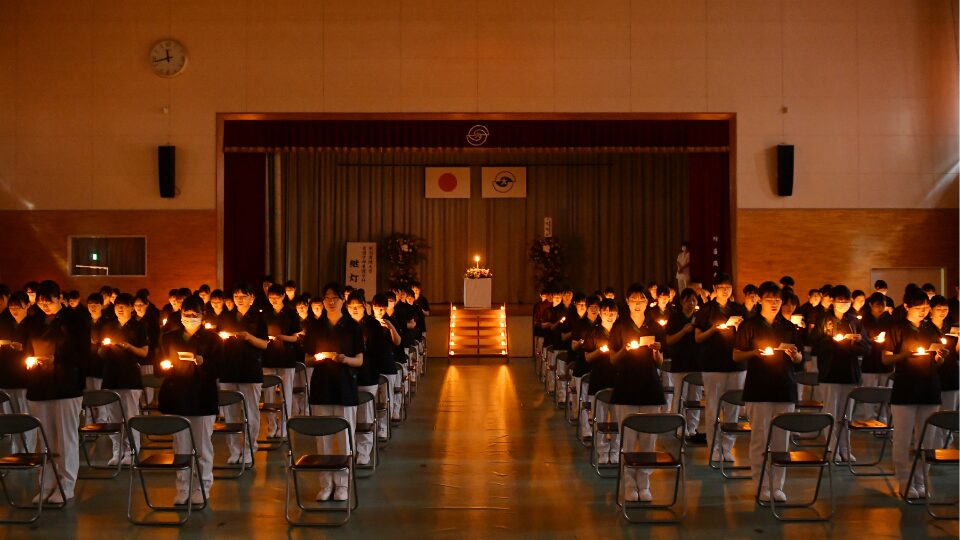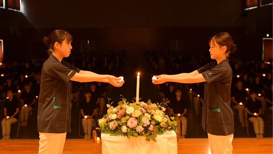 学生のご家族も見守る中、継灯生全員による誓いの言葉の唱和を行い、「看護のこころ」を受け継ぐようにキャンドルを灯し、厳粛な雰囲気の中で行いました。